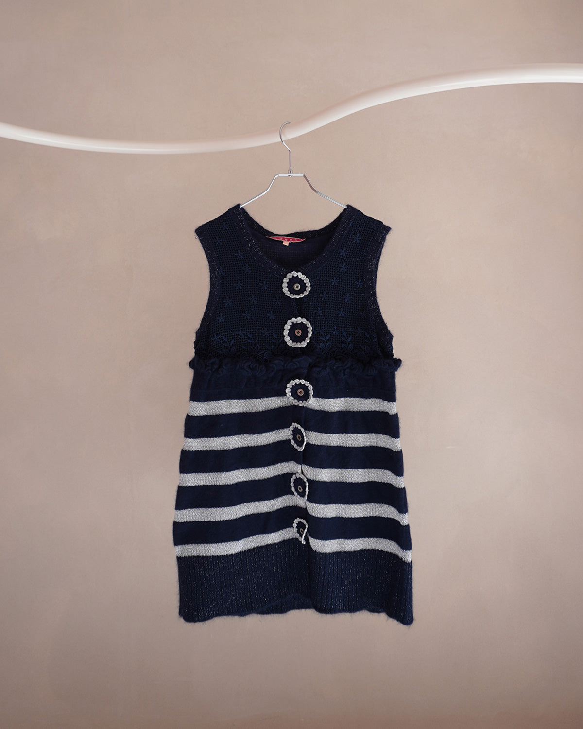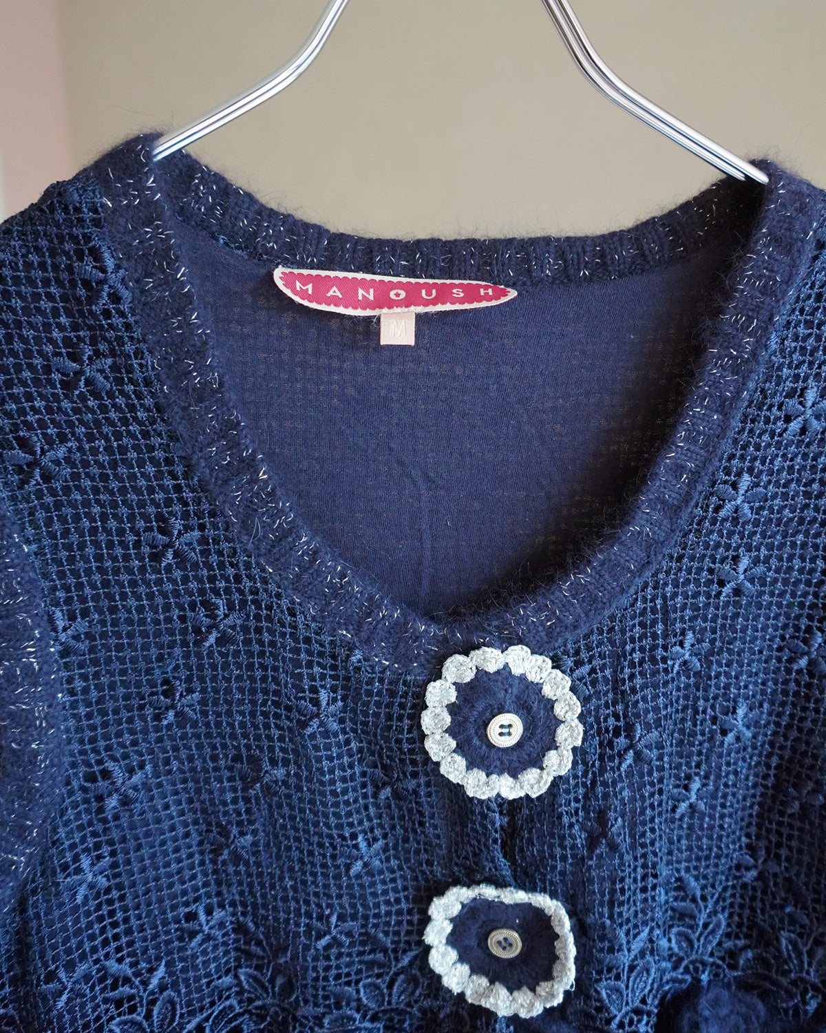 縦に並んだお花のモチーフがかわいい「マヌーシュ」のニットワンピース。