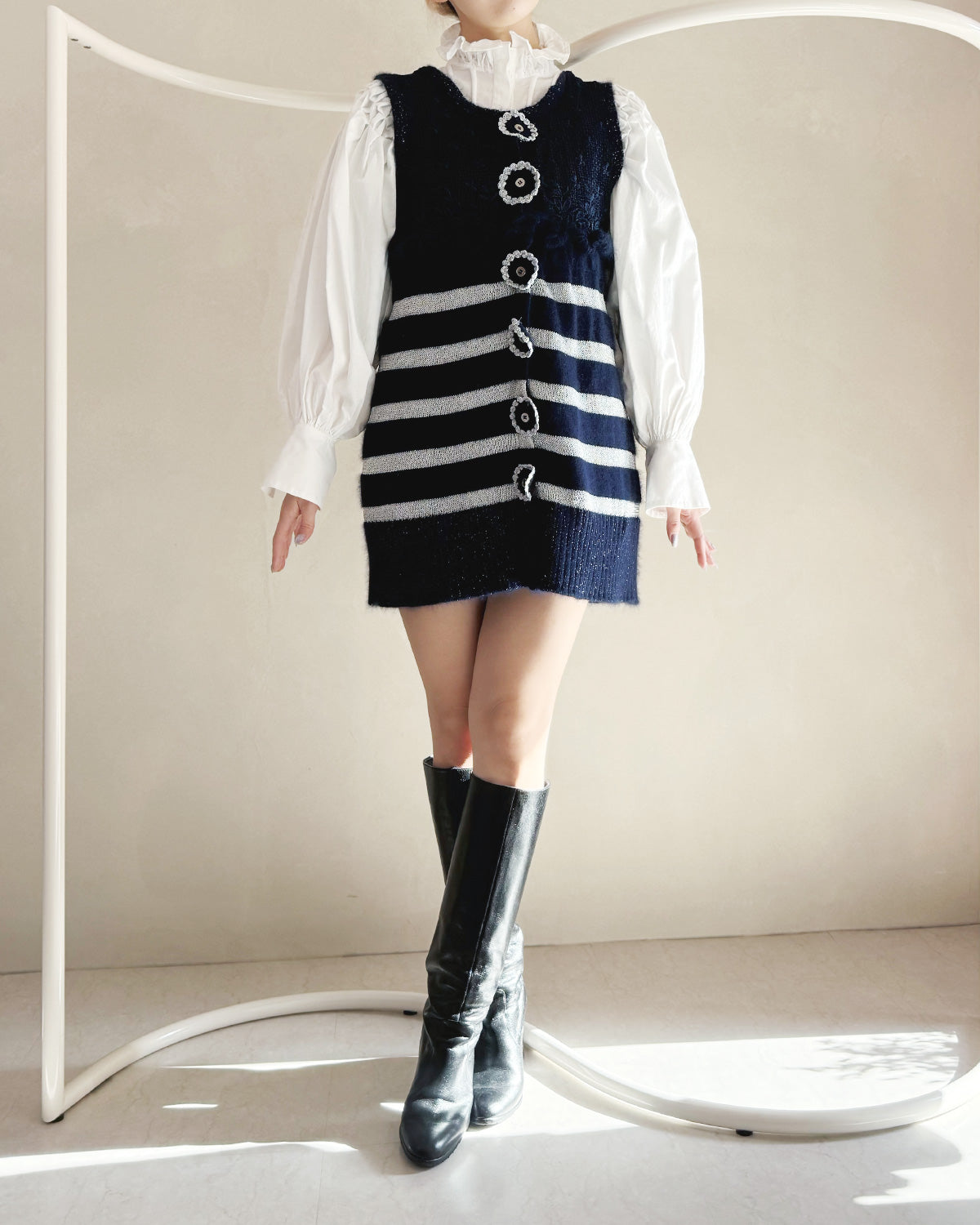 丈は少し短めなので、店主(165cm)は下に何かを穿かないといけないけど、ミニ丈ワンピースとして着られるならコケティッシュなフレンチガール気分になれるgoodワンピ⋰˚☆