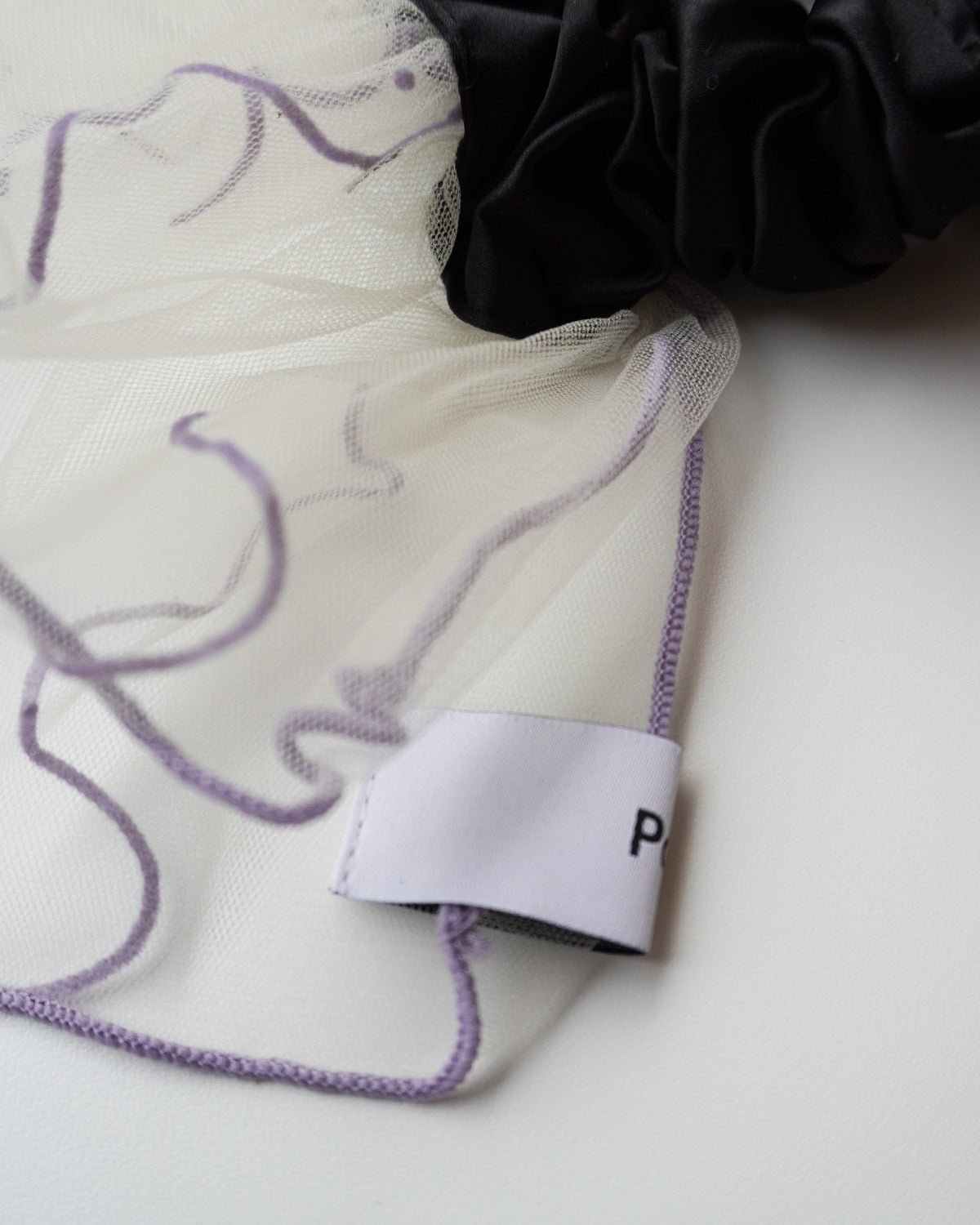 PoIのアイコニックでもあるチュールのシアートップスの生地を使用したシュシュです。