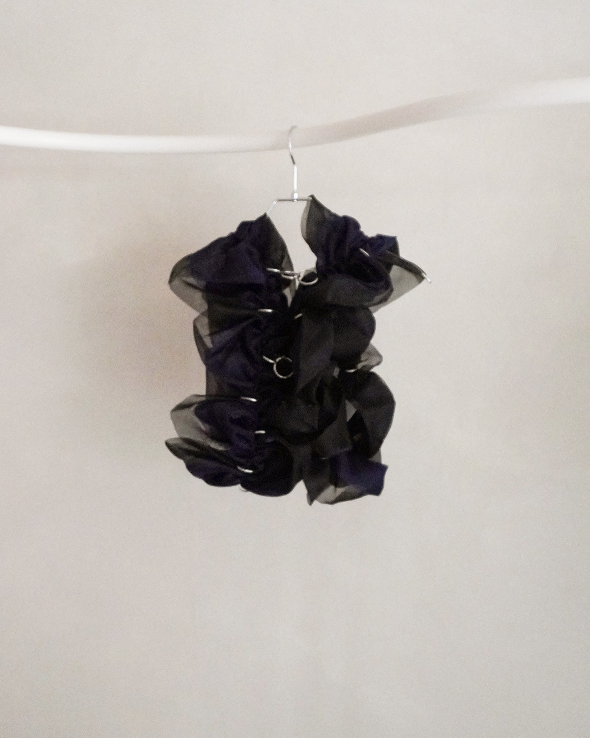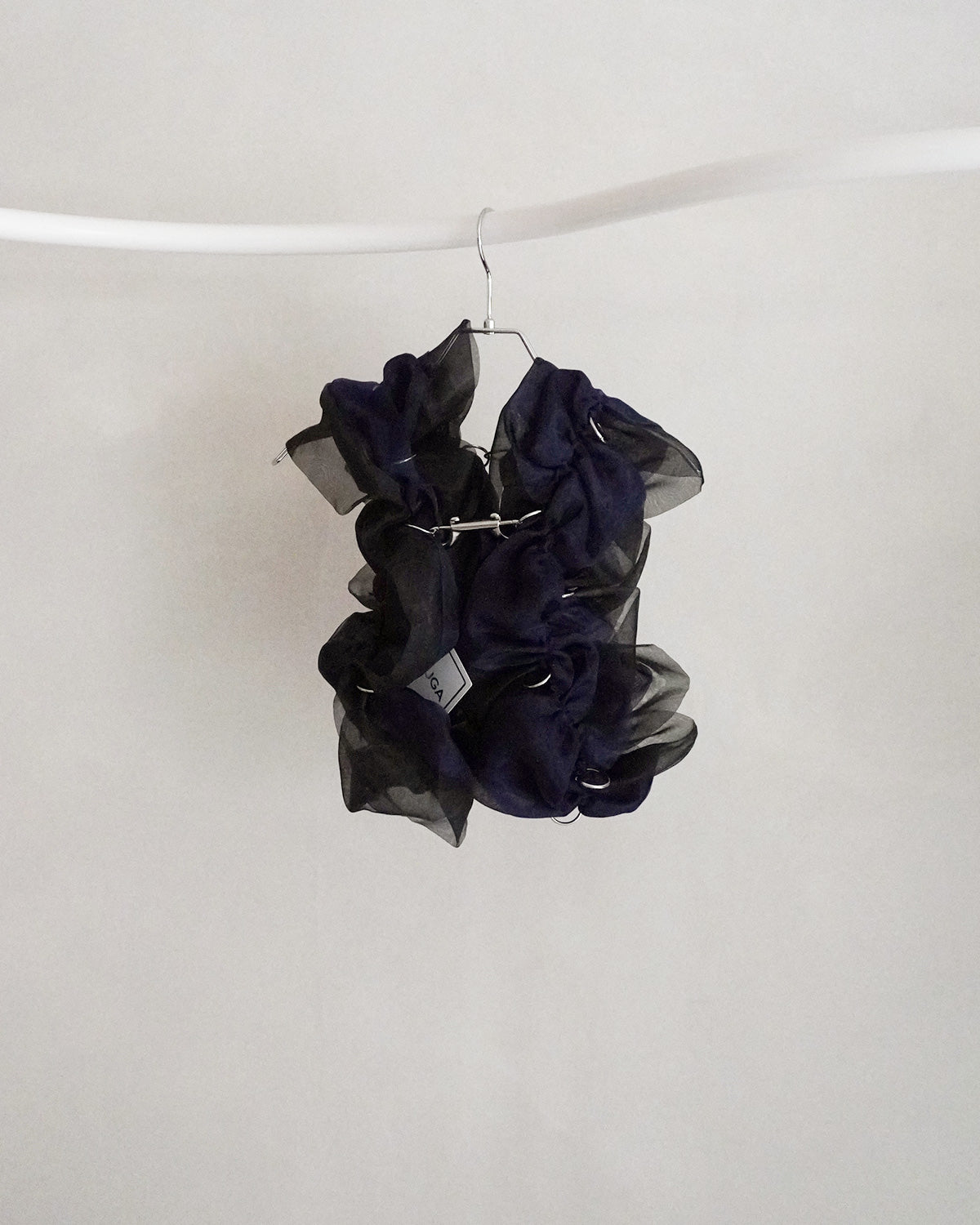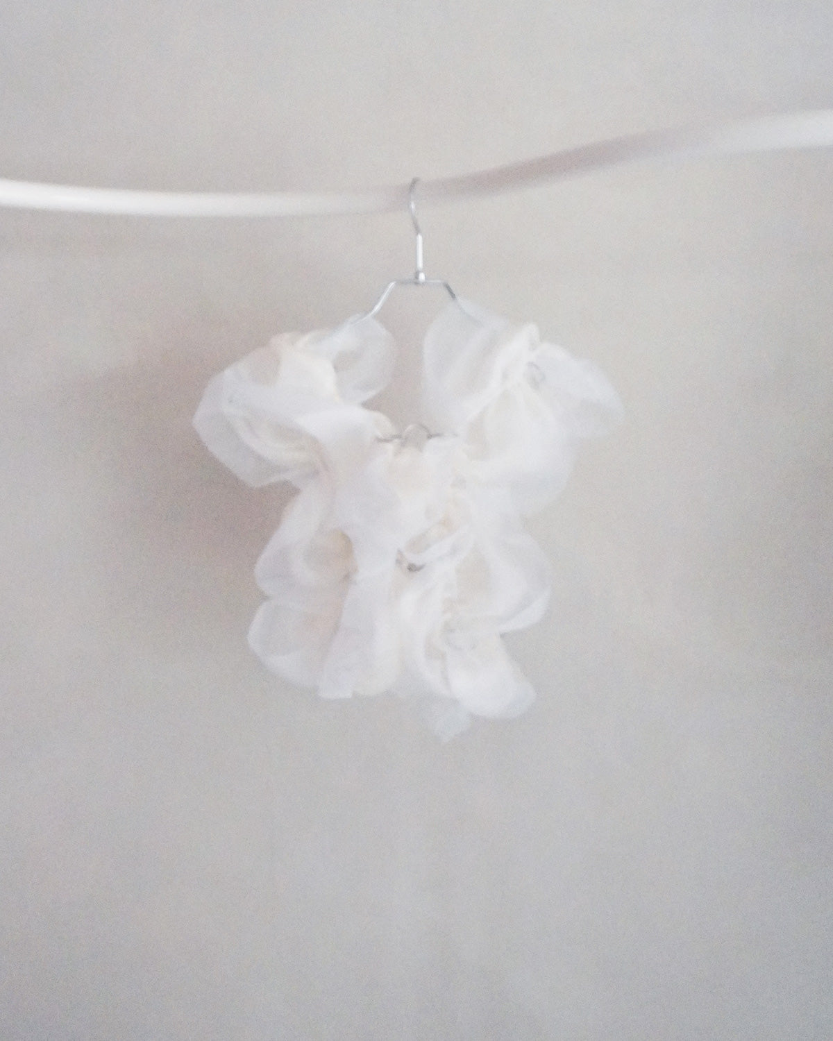 透明感と光沢感のある2色のグラスオーガンジーを組み合わせたドレスピース。 レース端のスカラップのように曲線的に動く、立体ギャザーフリルを贅沢に使用した1着です。