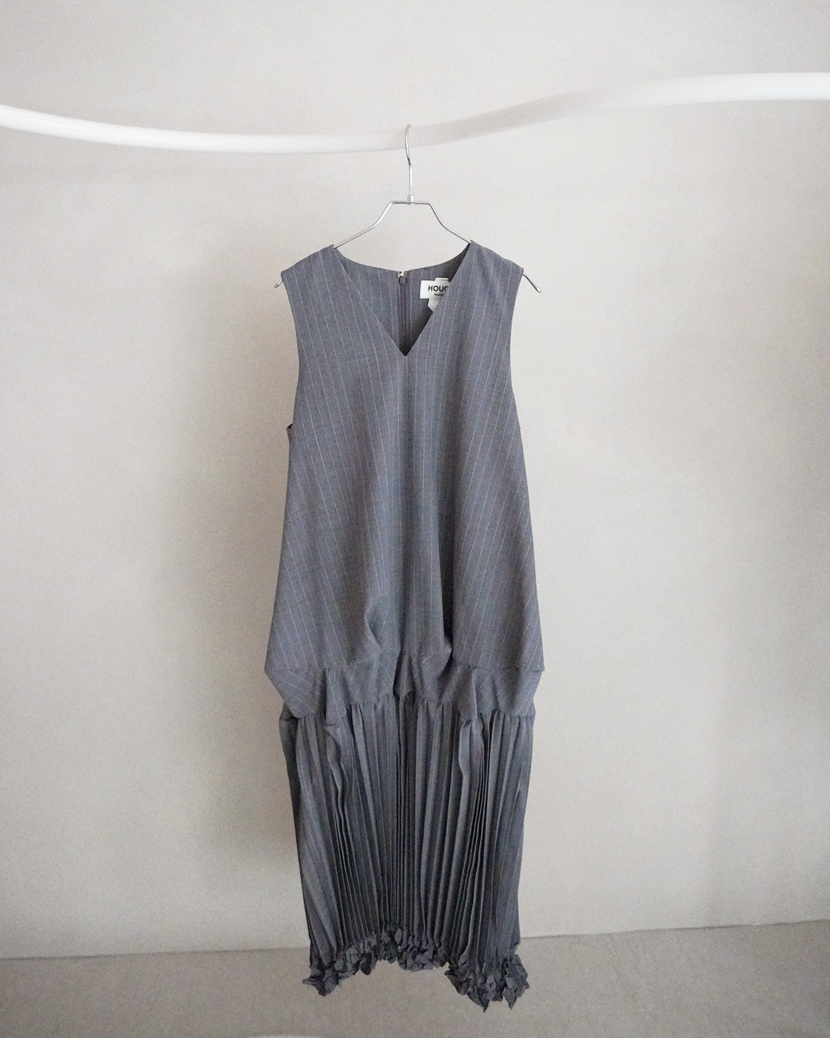 ノースリーブのまま1枚でシンプルに着ることも可能。 左右ポケット付き。