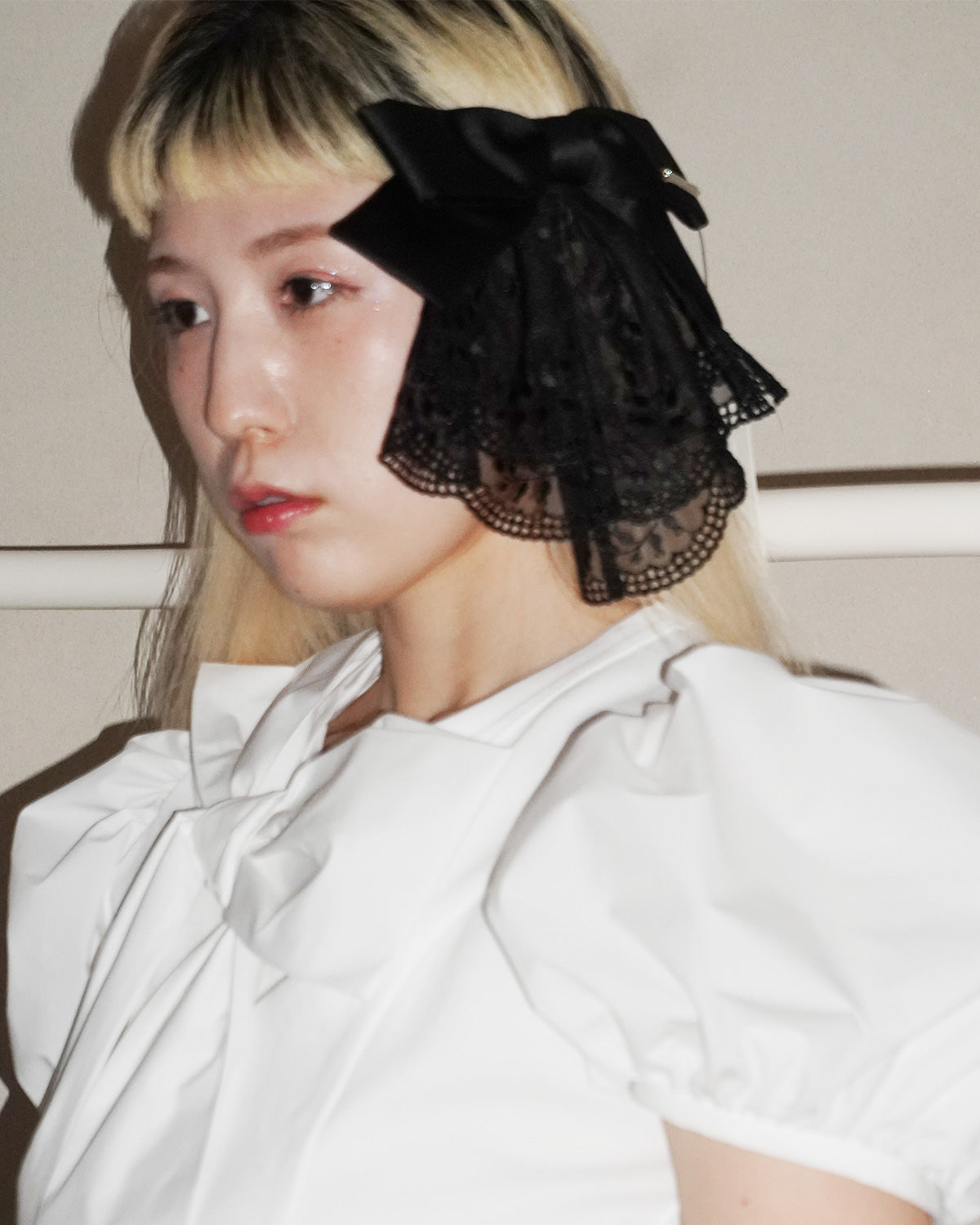 シーズンテーマを象徴するスズランの刺繍が施された繊細なレースをふんだんに使用したバレッタ。