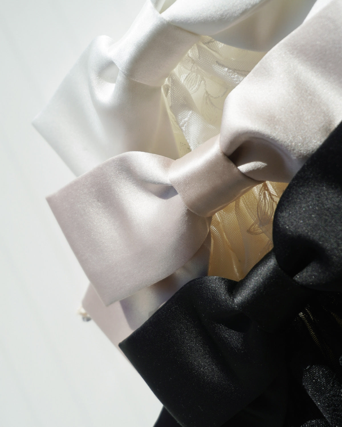大きなサテンのリボンとレースの組み合わせがとびきりドリーミー。