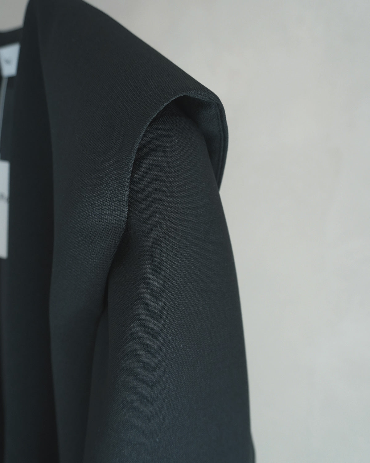 すっきりとしたノーカラーと切り込みの入った肩パッドで凛とした美しさを表しています。