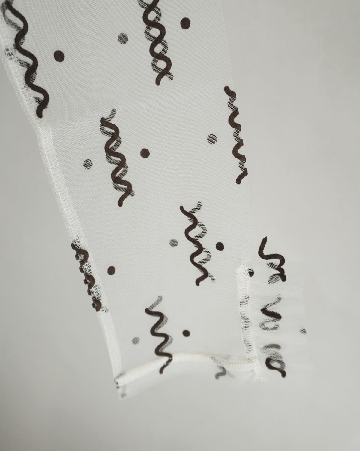 blackは白地のチュールにブラックのフロッキープリント。
