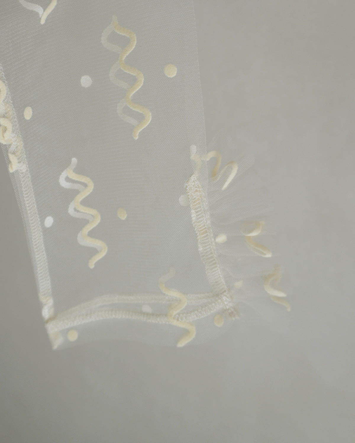 yellowは白地のチュールにイエローのフロッキープリント。