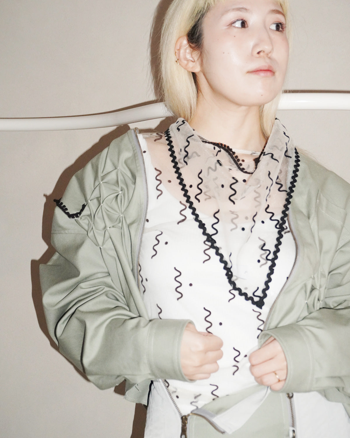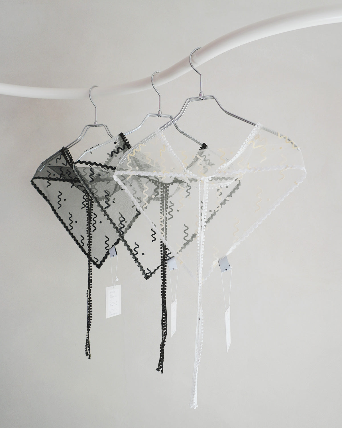 チュールにフロッキープリントでナミナミ模様をデザイン。