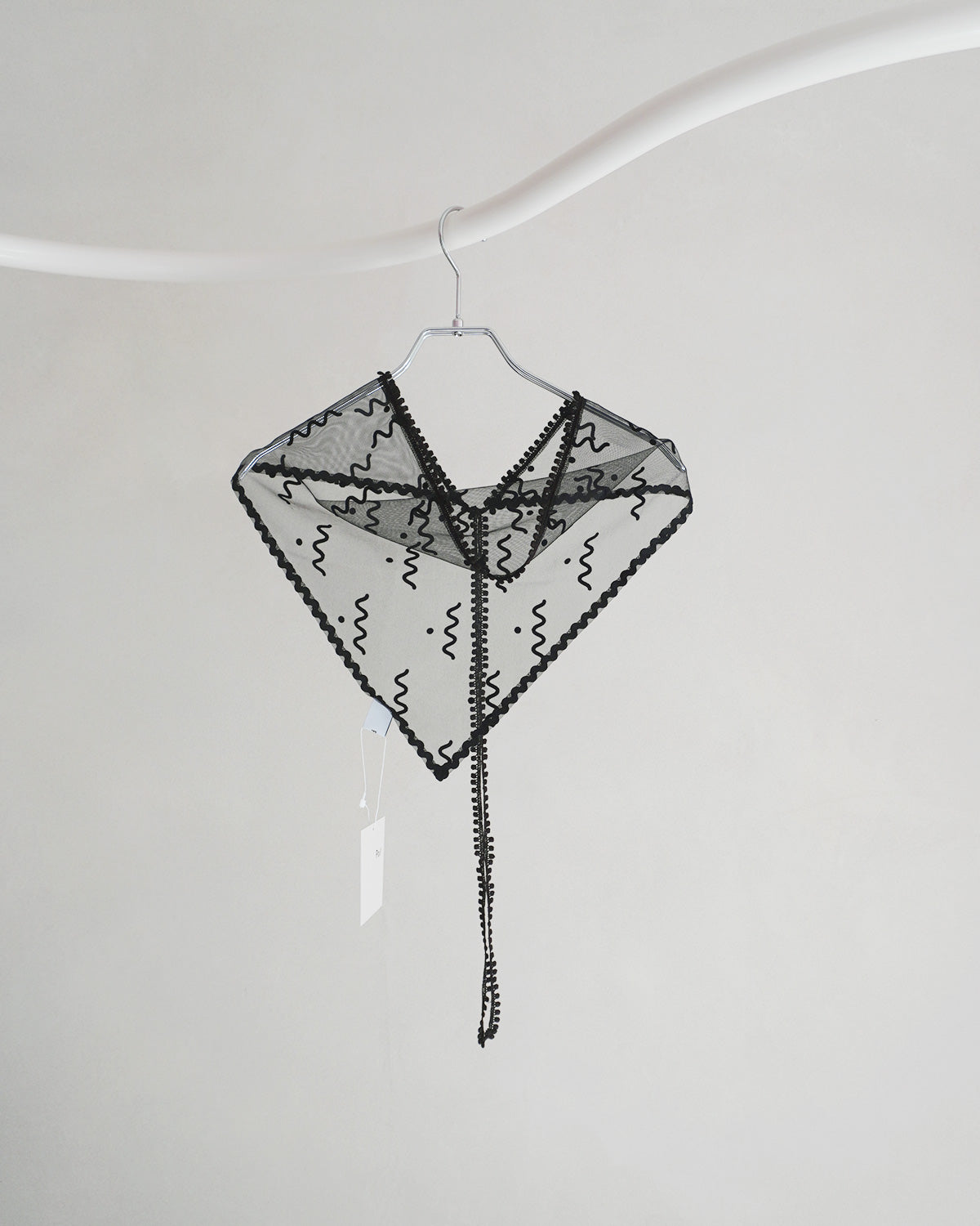blackは白地のチュールにブラックのフロッキープリント。