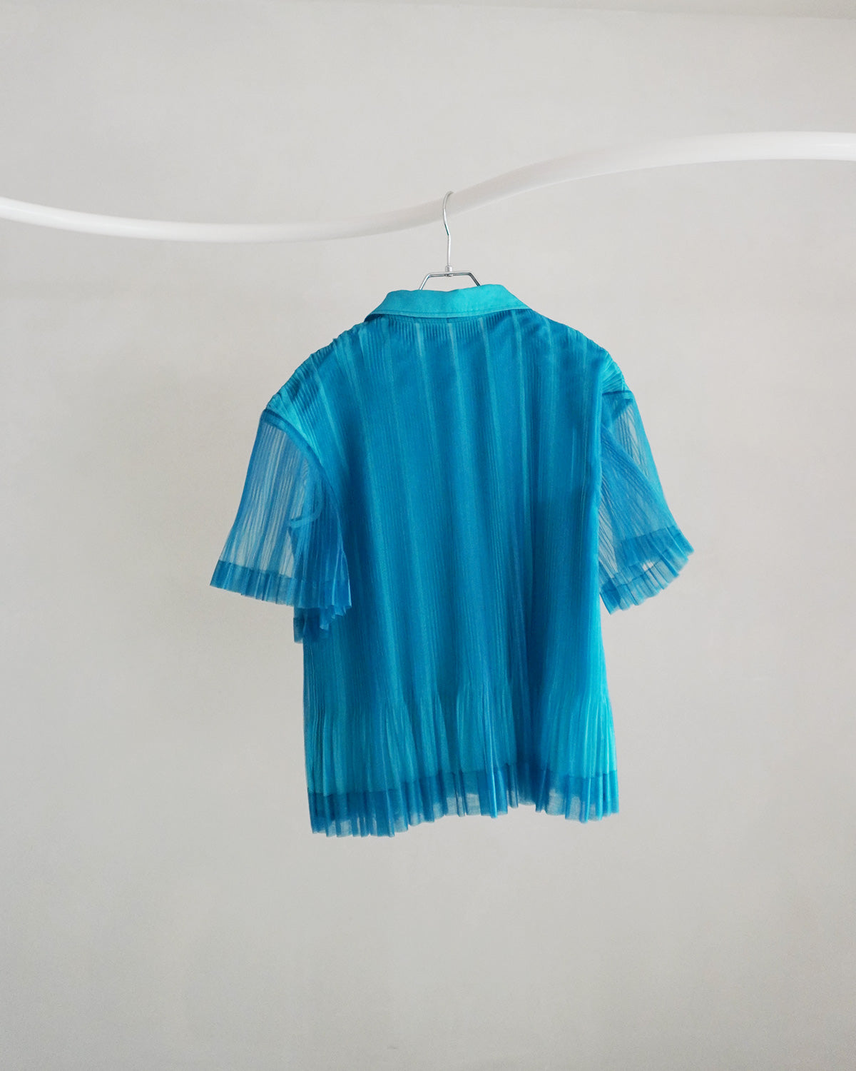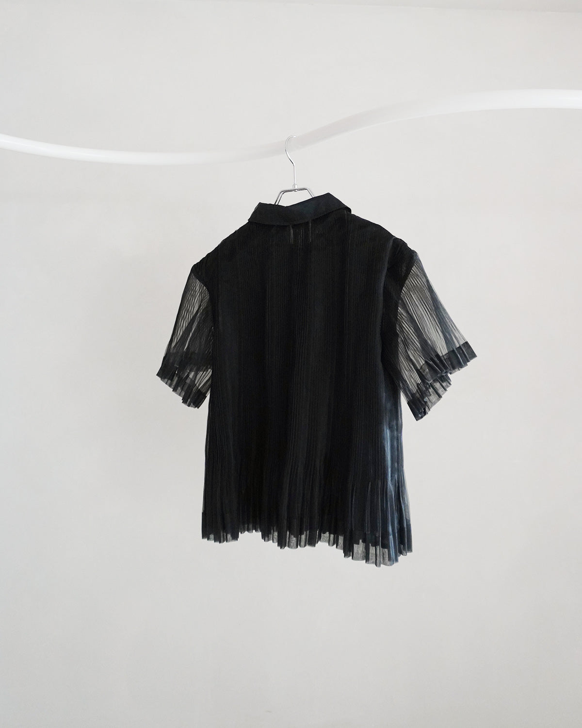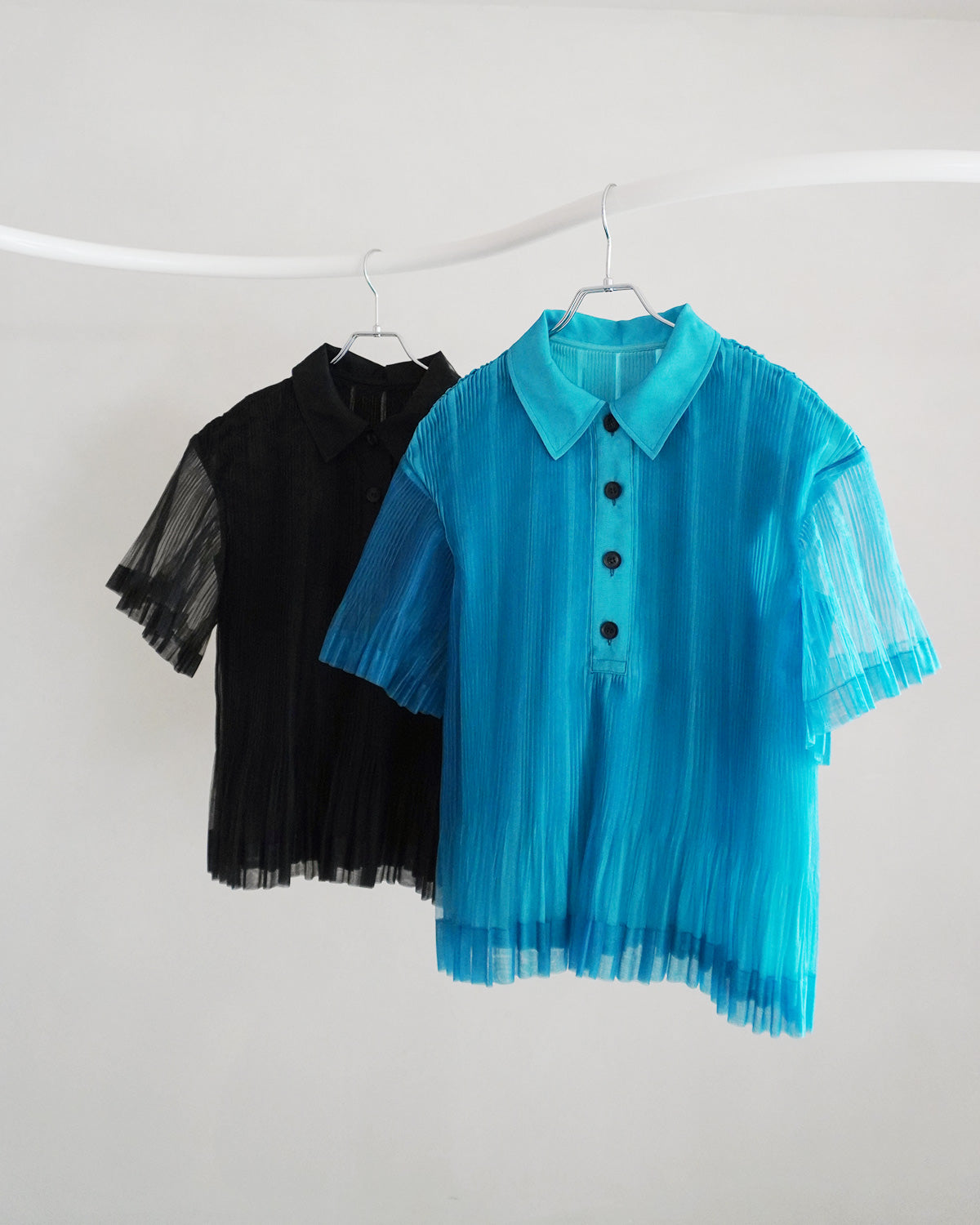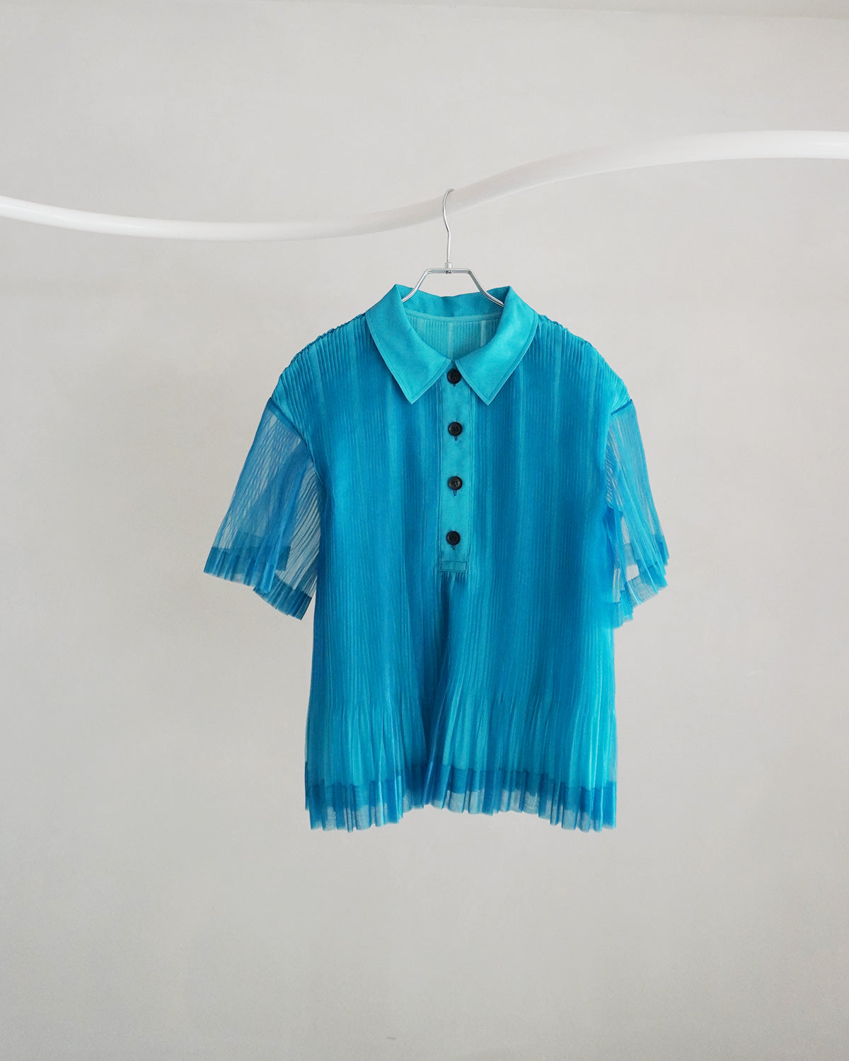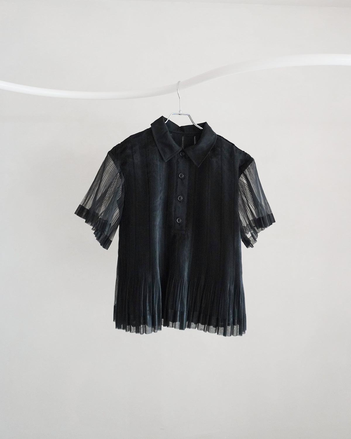 プリーツ×透け感が独創的なポロシャツ。