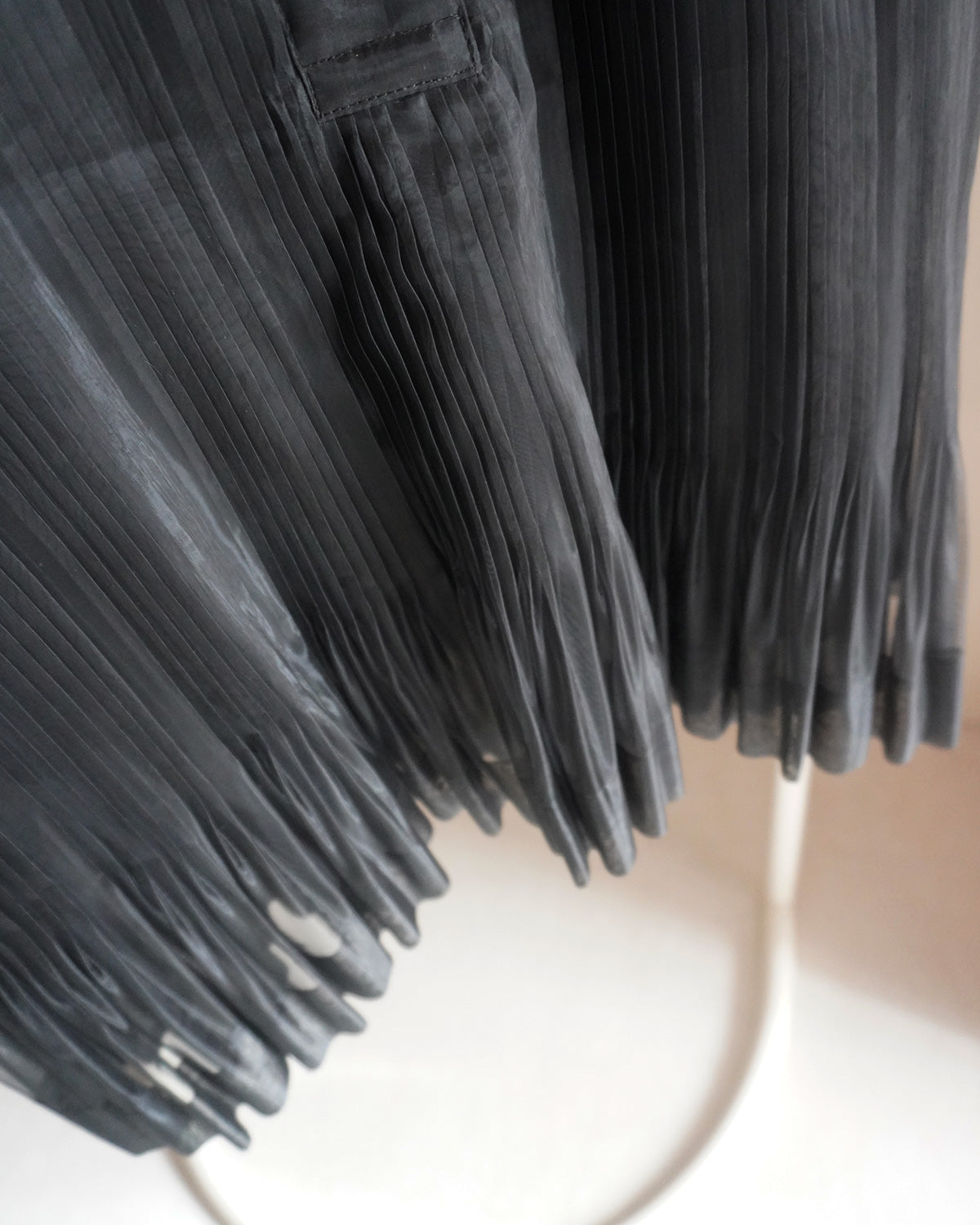 細かなプリーツの連続でストライプ柄を表現しています。