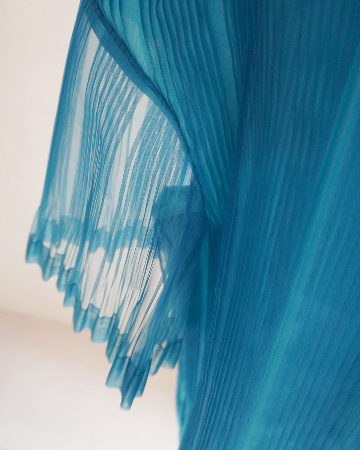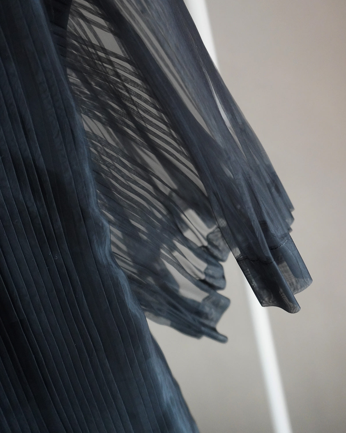 光沢と透明感のあるグラスオーガンジーと清涼感のある裏地にプリーツ加工を施した。
