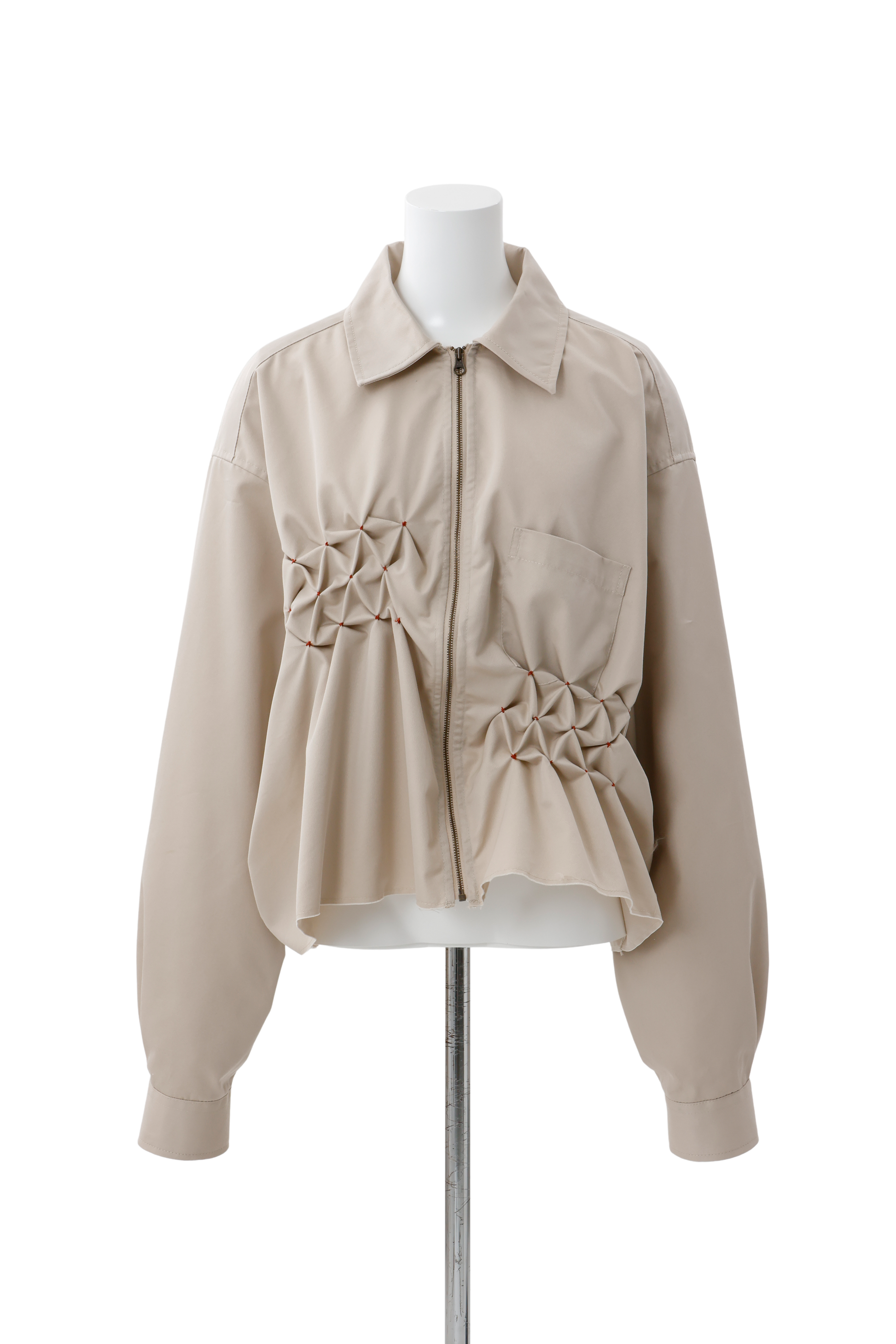 スモッキングをフロントの2箇所に施したスプリングアウター。