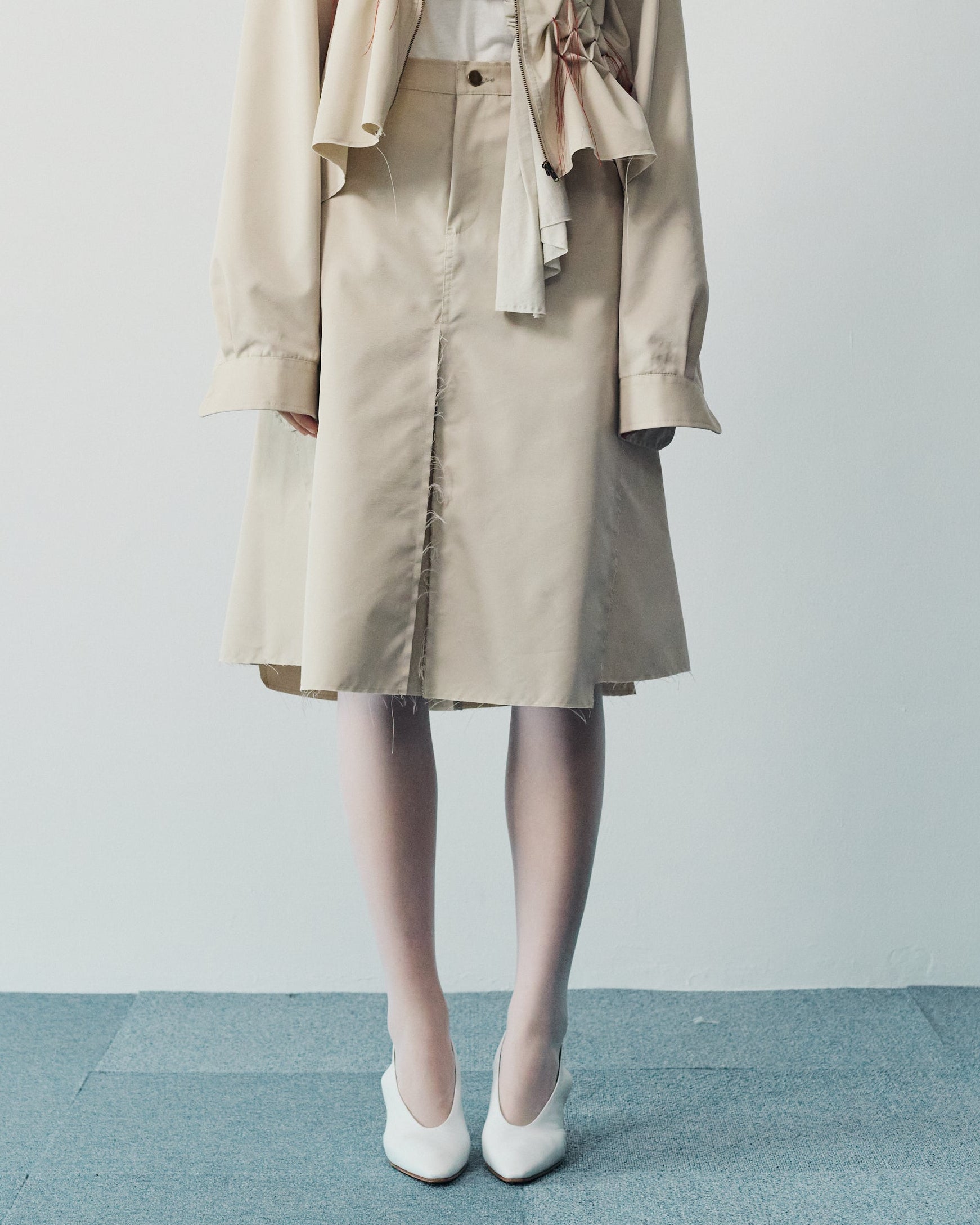 切りっぱなしのディテールがカジュアルな素材感の中にモードな印象を与えてくれます。