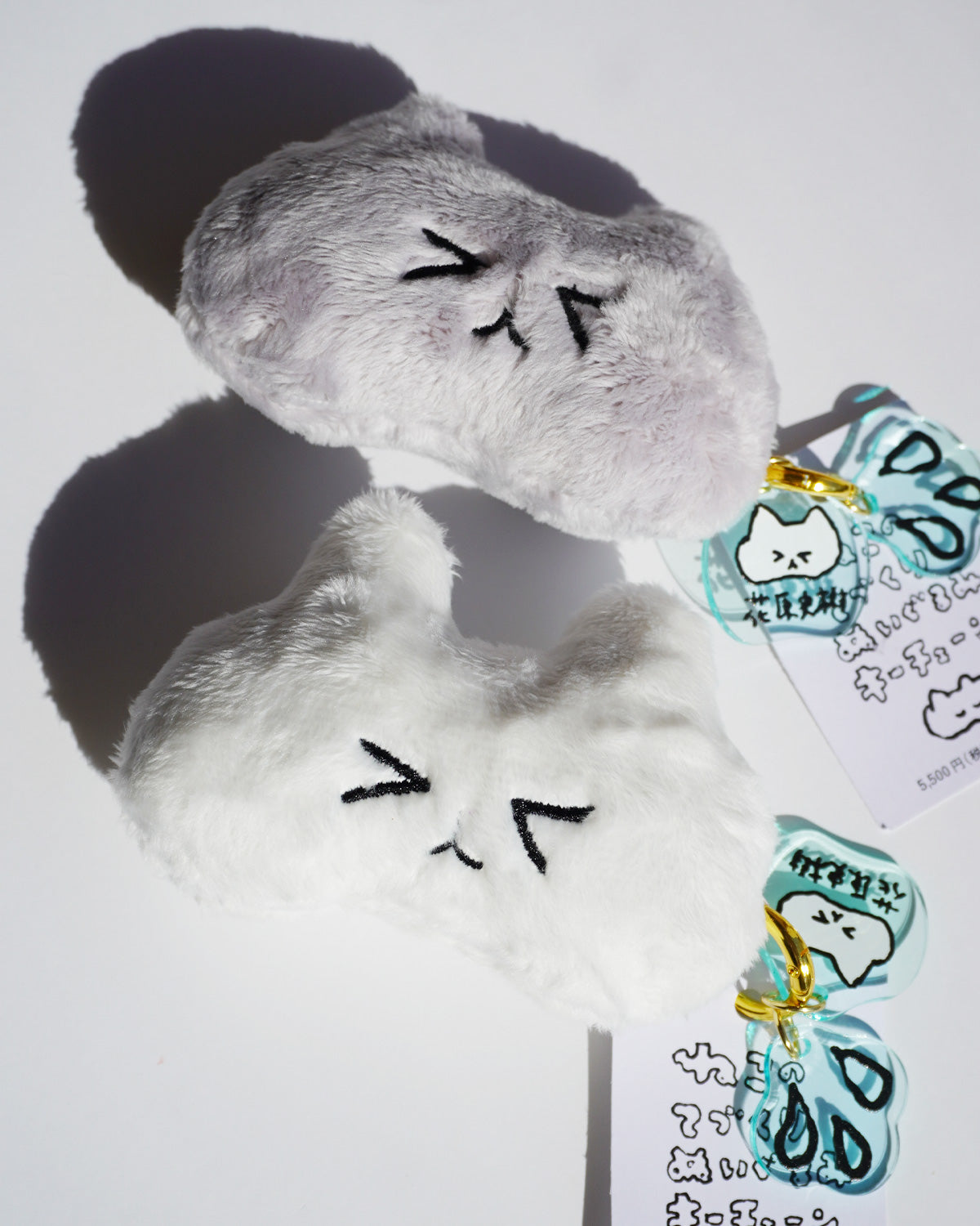目をつむるねこのてづくりぬいぐるみキーチェーン